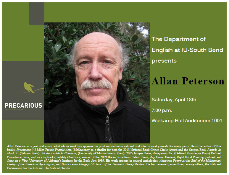 ReadingsALLAN PETERSON IN SOUTH BEND! by 42 Miles PressApril 18, 2015 Leave a Comment on ALLAN PETERSON IN SOUTH BEND! Share this: Share on Facebook (Opens in new window) Facebook Share on X (Opens in new window) X Share on Tumblr (Opens in new window) Tumblr Share on Pinterest (Opens in new window) Pinterest More Email a link to a friend (Opens in new window) Email Print (Opens in new window) Print Share on Reddit (Opens in new window) Reddit Share on WhatsApp (Opens in new window) WhatsApp Like Loading... Related